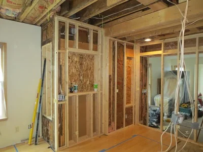 All new walls have been framed and the installation of new insulation has begun.