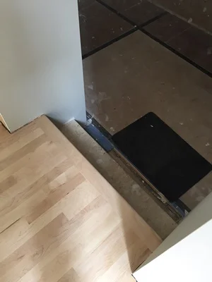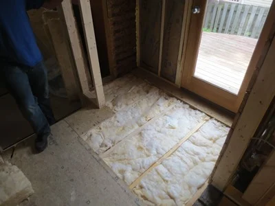 Insulation shown within the floor of the new mudroom addition.