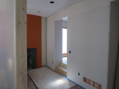 This view shows the new hallway leading into the family room.