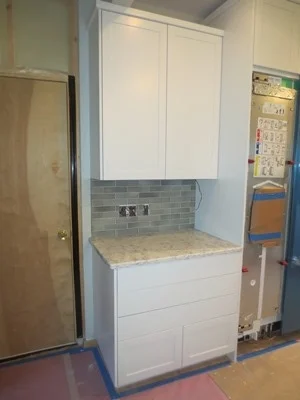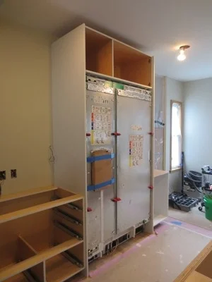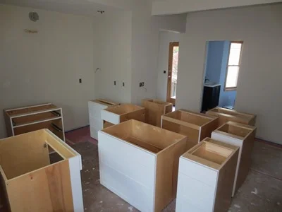 The cabinet installation is underway.