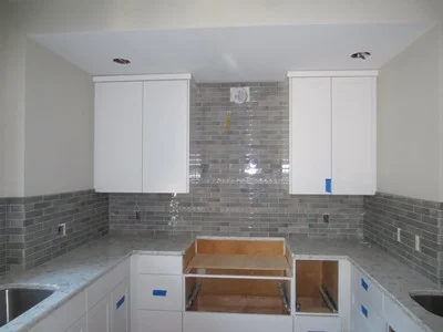 Quartz counter tops and the tile backsplash are up next.