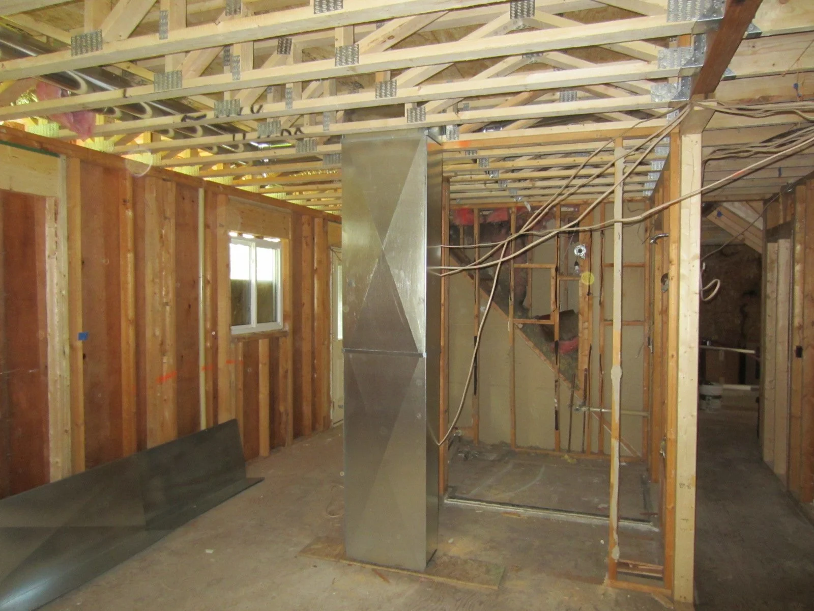 A new HVAC trunk line for the 2nd floor is installed.