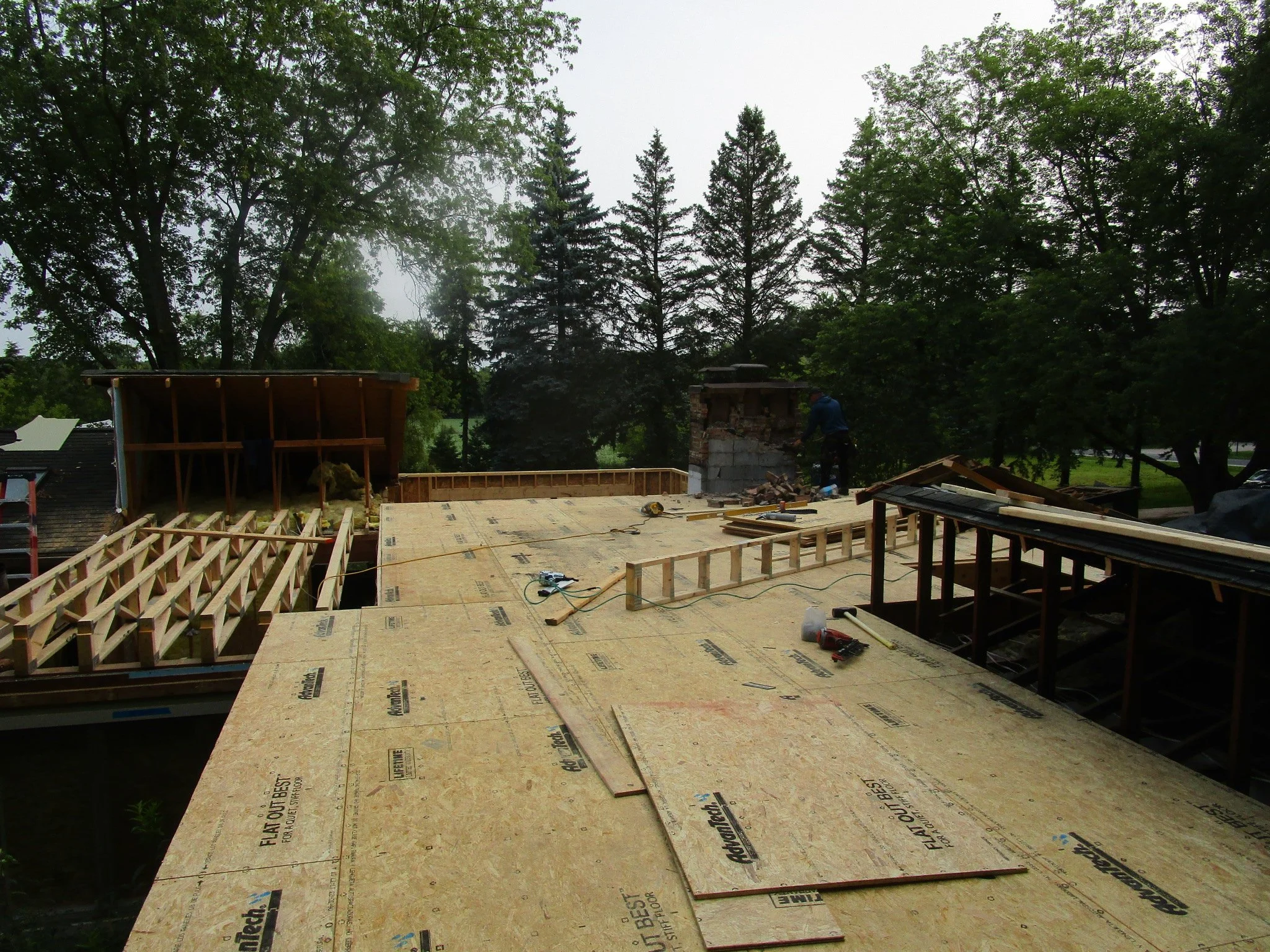 The floor trusses and Advantech sheathing (the subfloor).